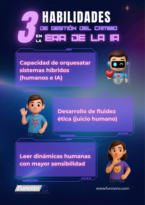 Y la tercera es la habilidad de leer dinámicas humanas con mayor sensibilidad. A medida que automatizamos tareas analíticas, el valor diferencial del change manager estará en su capacidad de construir confianza, facilitar conversaciones difíciles y comprender la cultura en profundidad. La tecnología potencia, pero no reemplaza la empatía, la escucha activa y la capacidad de influir.